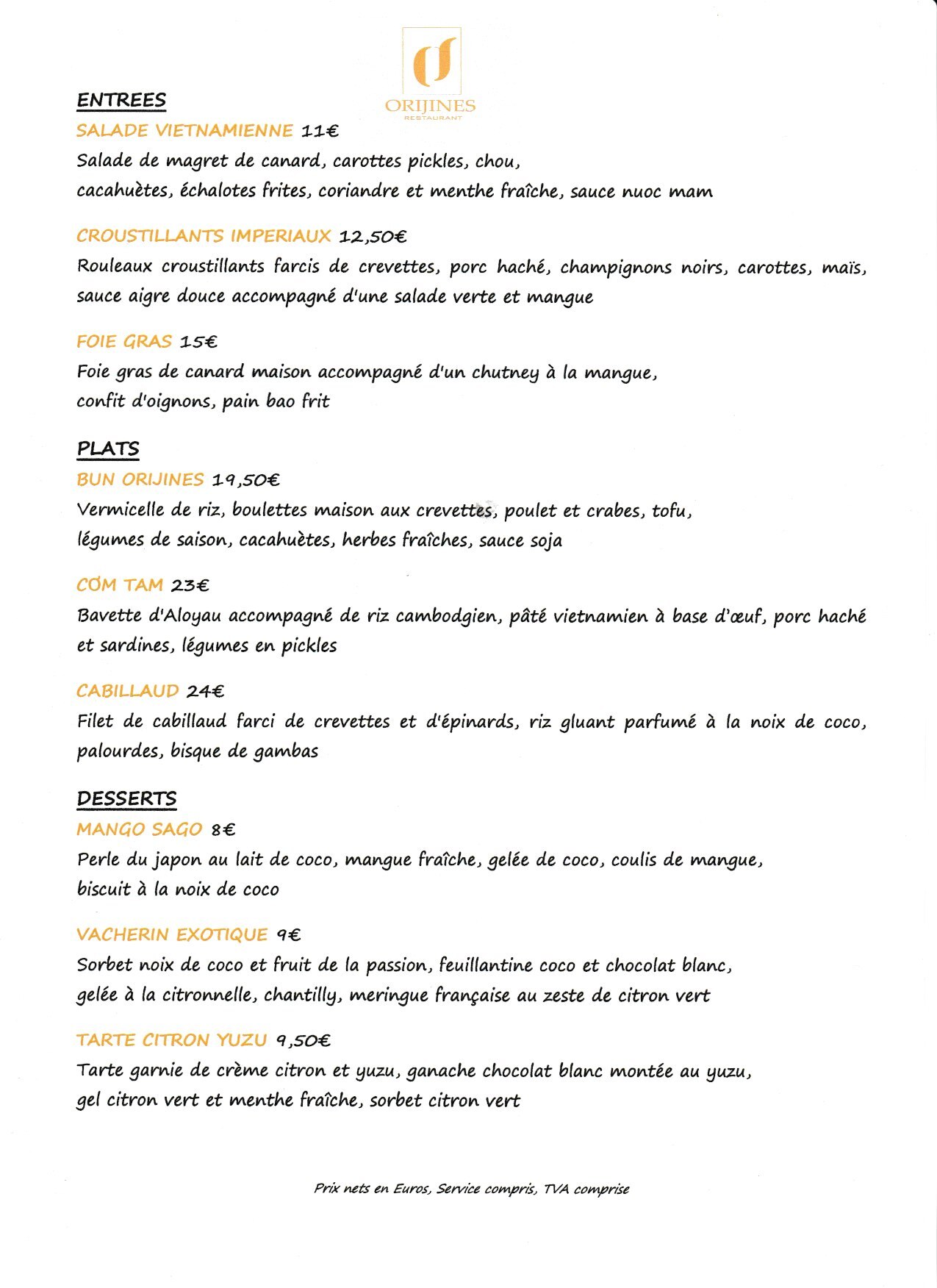 Des techniques culinaires traditionnelles françaises et asiatiques sont utilisées pour créer des combinaisons de saveurs surprenantes et délicieuses.